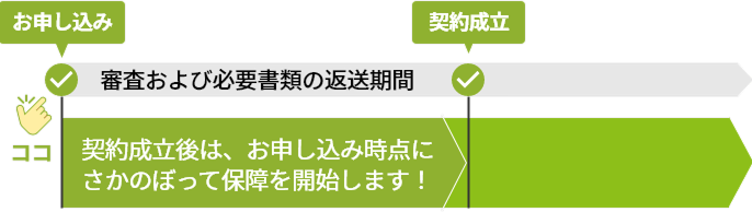 ウェブサイトからお申し込みいただき、審査が完了してご契約が成立した後、お申し込み時点にさかのぼって保障を開始します。